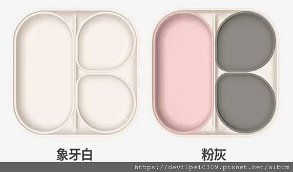 【MOTHER-K 鉑金矽膠吸盤防滑餐盤組】總共有兩種顏色,分別是【象牙白】以及【粉灰】撞色