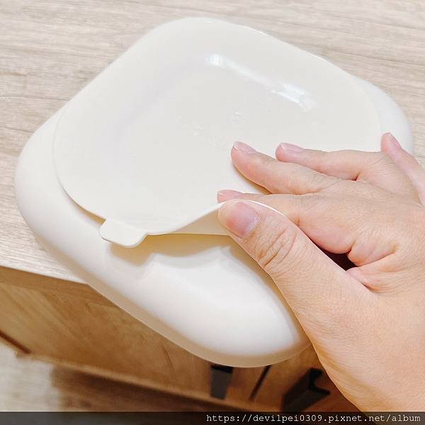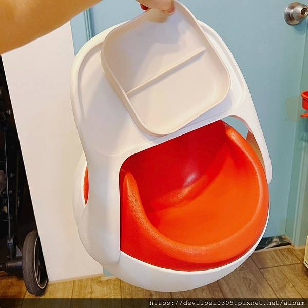 大餐盤的背面設計則是【吸盤】,有超強的吸附力,小佩直接拿育成椅測試,就知道有多強了,所以不怕寶寶打翻食物。