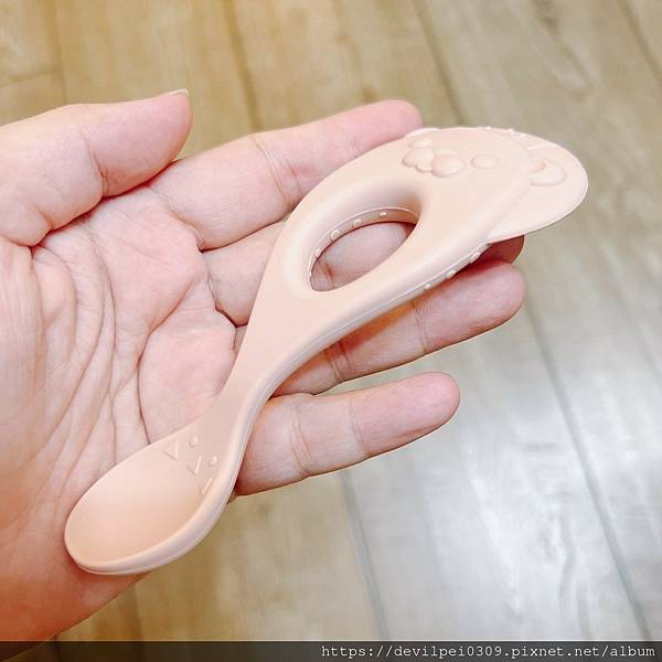 湯匙的小頭設計,也方便寶寶入口,4m+開始吃寶寶泥就可以開始使用了喔!(可惜麥麥8M我才有這支湯匙)