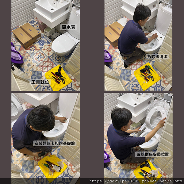 師傅會先確認便座安裝空間和位置是否正確,確認完畢後就把類似卡扣的基礎盤安裝上去